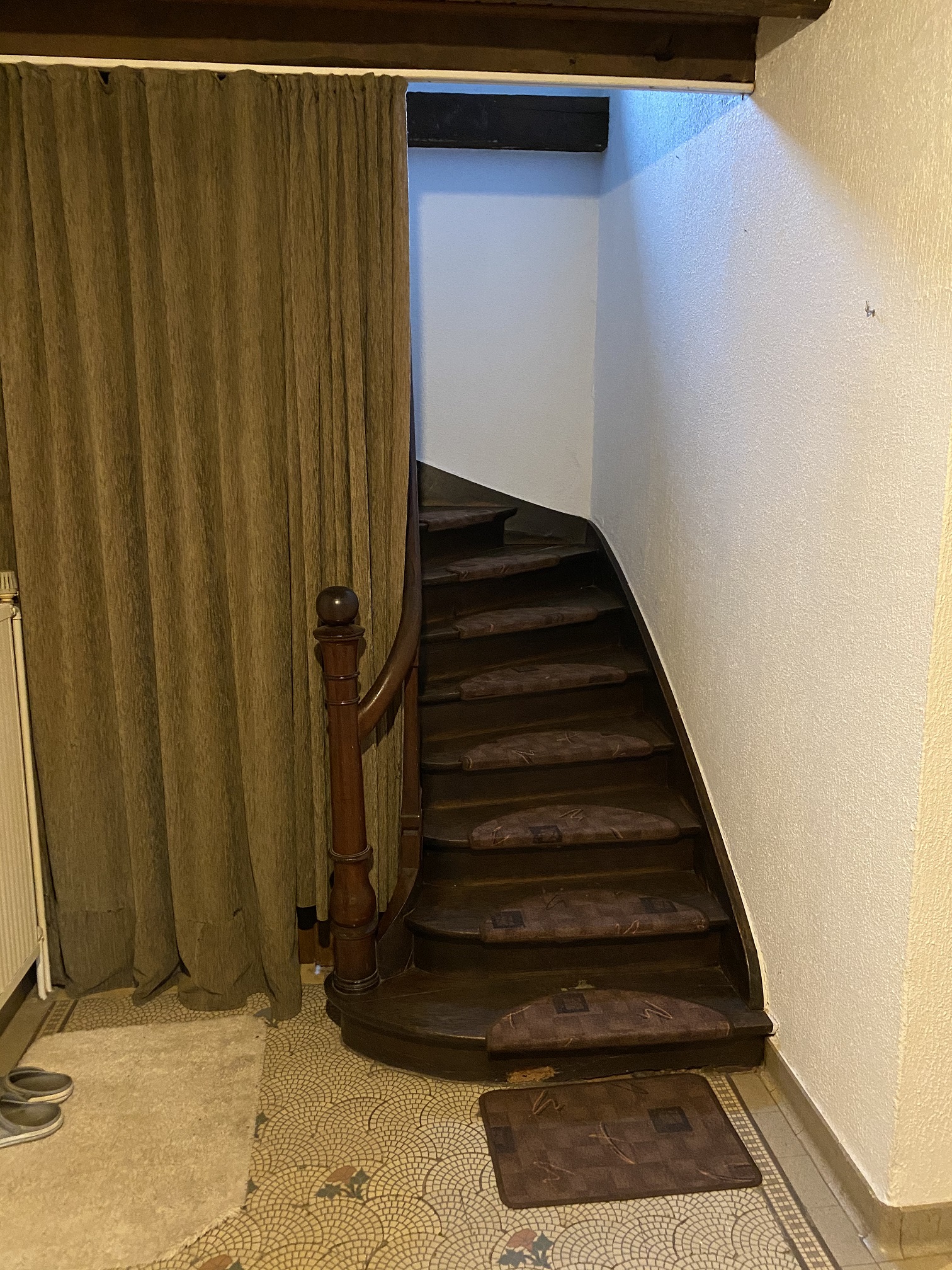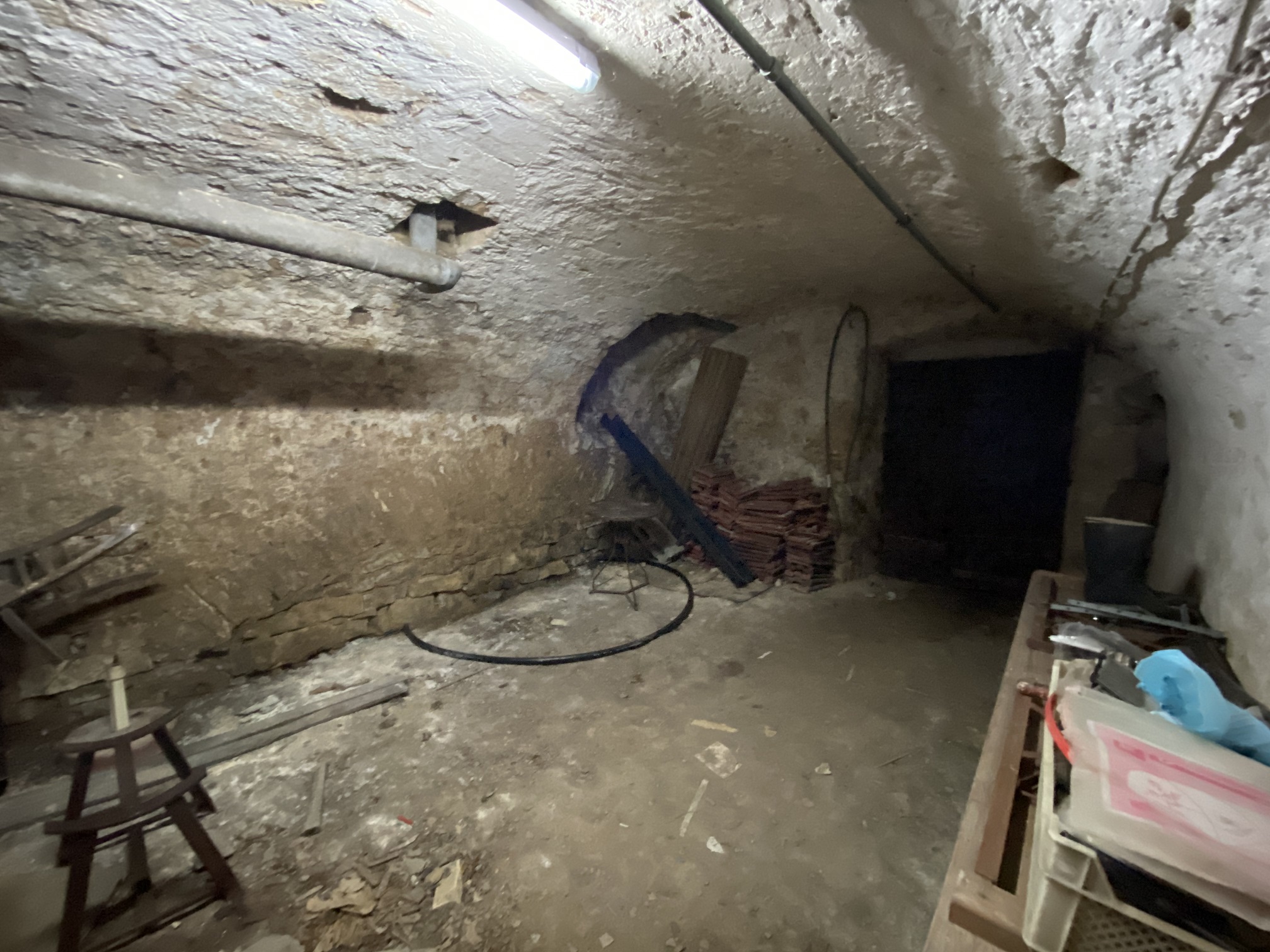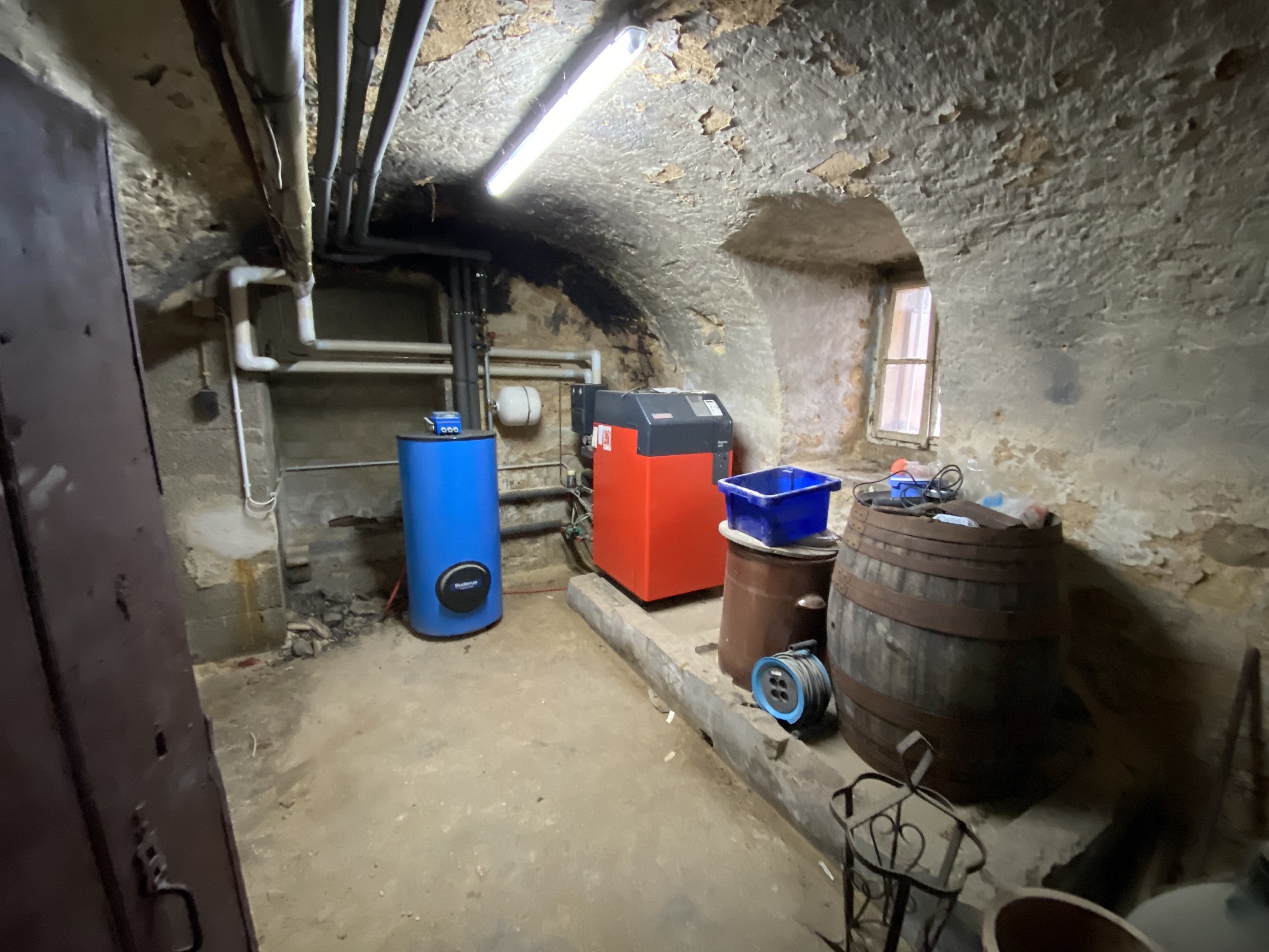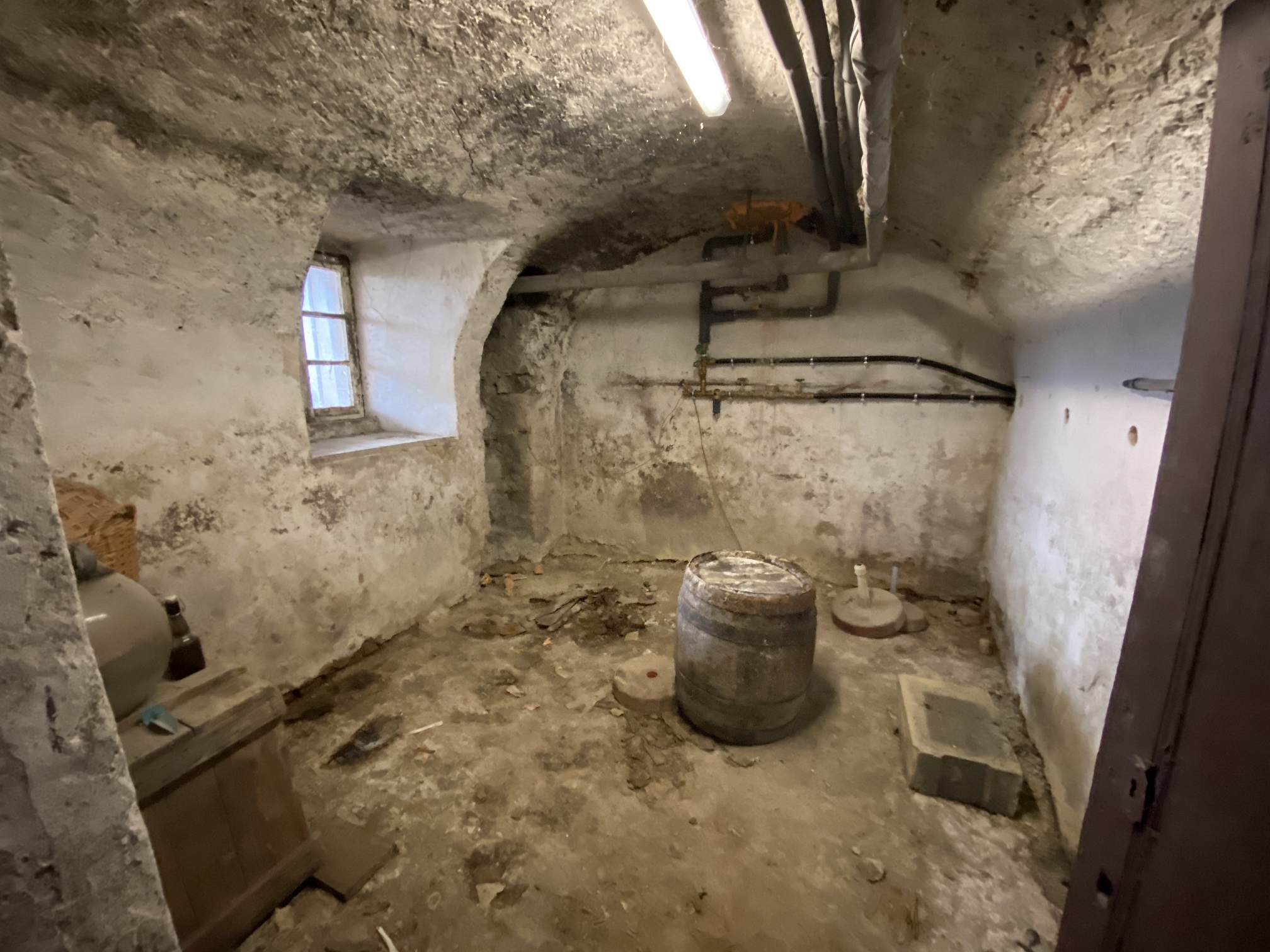 Sous les deux parties sont situées des caves (voutées) qui sont actuellement utilisées comme chaufferie et pour stockage.