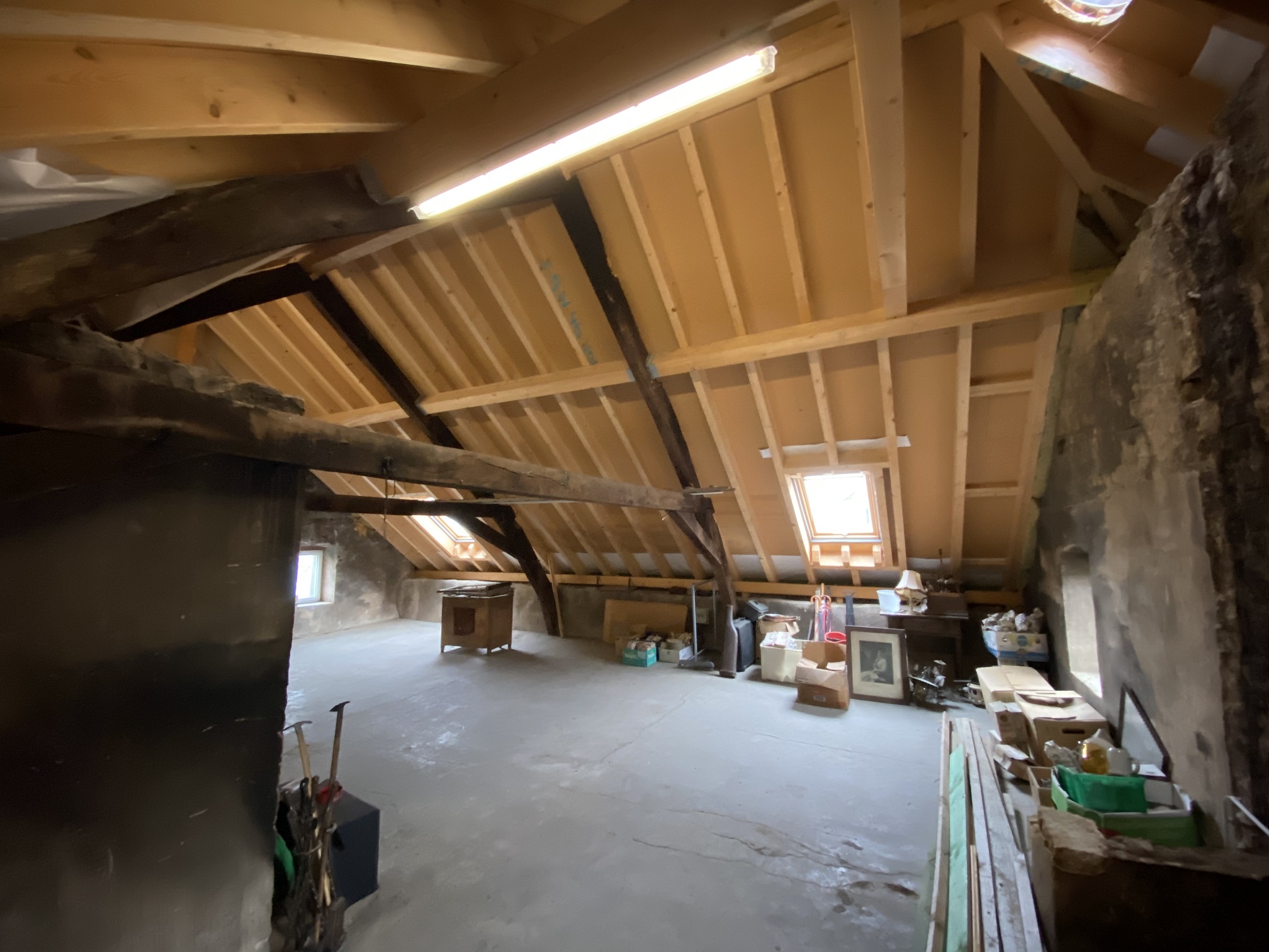 Sous la toiture(laquelle vient d’être complètement rénovée), se trouve un vaste grenier qui peut être aménagé .